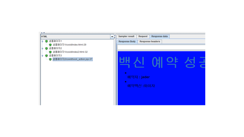 각 페이지가 정상적으로 뜨는 것을 html 형식으로 확인을 해주었고, 정상 동작하는 것을 볼 수 있다.